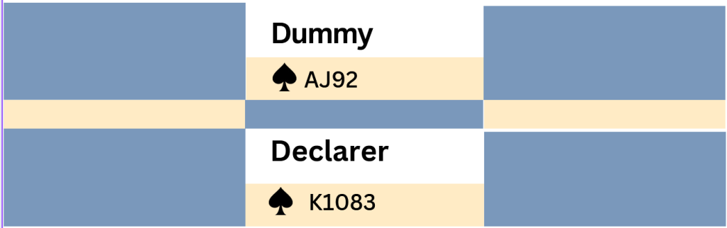 Introduction to Bridge classes typically introduce students to the slogan “eight ever, nine never”. This slogan refers to the decision about whether to finesse for a missing Queen in this sort of position (you have eight combined cards in the suit):