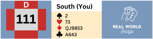 If you bid two notrump, and partner rebids three diamonds, will you pass? It wouldn’t be ridiculous to invite game with four diamonds, but with major suit strength sitting behind partner, we would pass three diamonds at matchpoints.