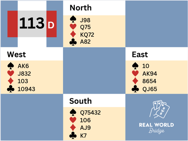 Bonus from Val: After winning the second round of trumps, lead the eight of hearts (making it clear that you don’t want a heart return) to get your ruff. Then, to the next trick, lead the Jack of hearts, in case (unlikely but possible) partner started with AK10 and declarer started with three small (in that alternative layout, you would defeat the contract by two tricks rather than one).