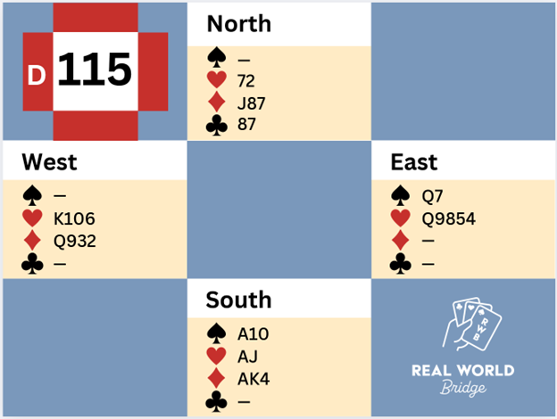 Declarer has six winners with seven cards remaining; when you discard two hearts, declarer has no winning option, but if you discard a spade, declarer wins all seven of the remaining tricks. Minus 660 is 81% and minus 690 is 52%.